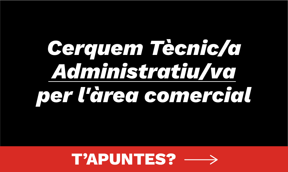 Requisits: · Formació Cicle Formatiu superior en Administració o Grau en Relacions Laborals. · Coneixements demostrables en les àrees d’administració de personal, reclutament i selecció, prevenció de riscos laborals, formació, etc. · Experiència en lloc similar. · Nivell avançat en Office, especialment en Excel. · Es valorarà experiència en ERP Integrho. · Idiomes: català, castellà. […]